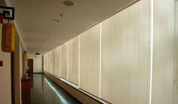 卷帘采用优质环保面料,背面涂银或涂白,保证一定的遮光性。卷帘面料可分为半透光和半遮光和全遮光等,客户可根据室内环境,窗户位置做出适合的选择。