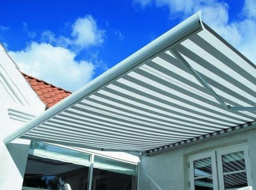 曲臂遮阳篷,它的最大优点是室外空间的利用,操作简单且方便,当收起曲臂式遮阳棚是,又完全不会影响整个建筑的美观,使人们的生活更接近于大自然,鲜艳靓丽的颜色为建筑物增添了一道靓丽的风景线。